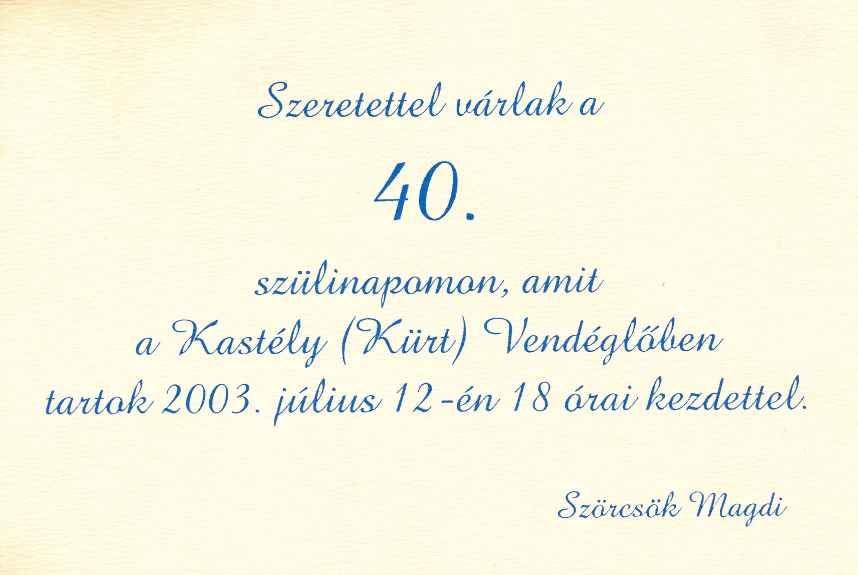 Meghívó Szörcsök Magdolna 40. születésnapjára |